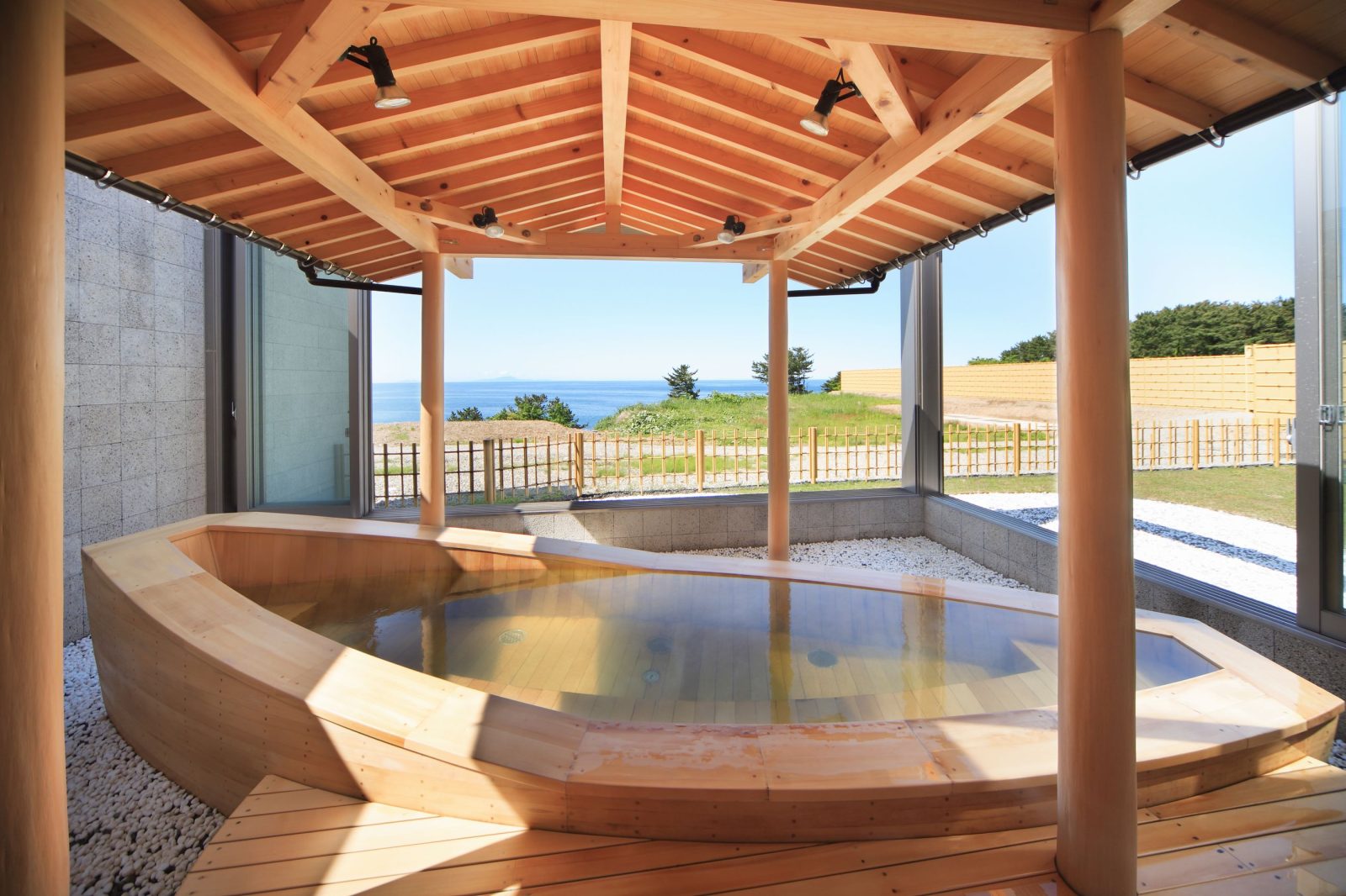 Guests can relax in spacious hot spring baths overlooking the Sea of Japan, while rooms with private showers provide added comfort. An on-site restaurant serves fresh seafood, allowing you to fully enjoy the flavors of the region.